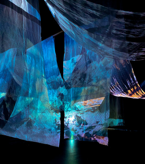 The A/V installation ‘Eight Eyes, Upside Down and 70,000 Hertz’ transports viewers into parallel worlds of perception of our all-encompassing human influence – an attempt to make the sensory impressions of non-human realities and microcosms tangible. Unidentifiable (animal) sounds question whether their origin lies in human or non-human nature or even interpolation, and passing landscapes overlap, with what has just been seen in reality merging fluidly with software errors to form a hybrid – an allegory for the frenzied standstill in a time when even high-tech devices seem to be overwhelmed by excessive speed…