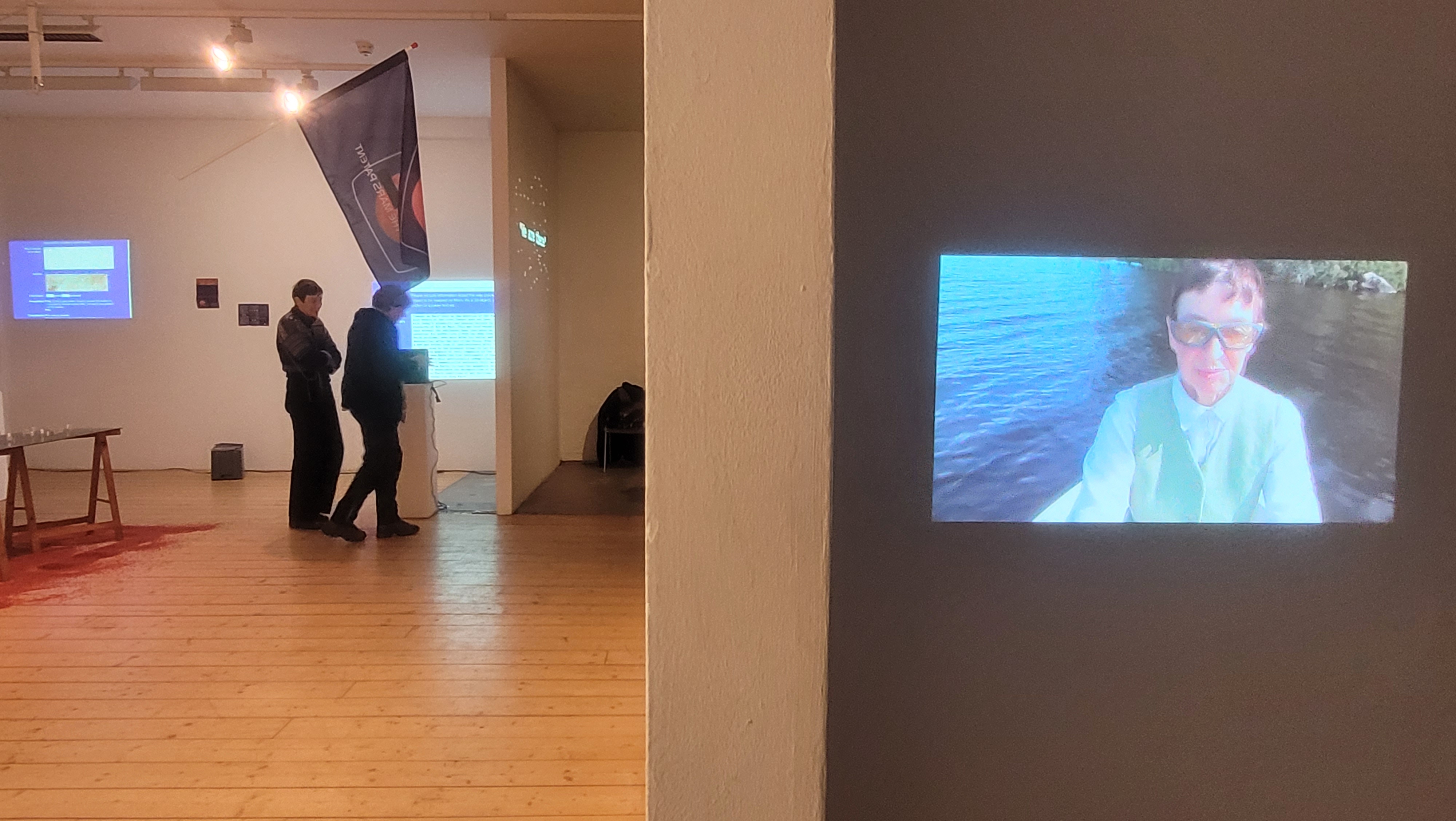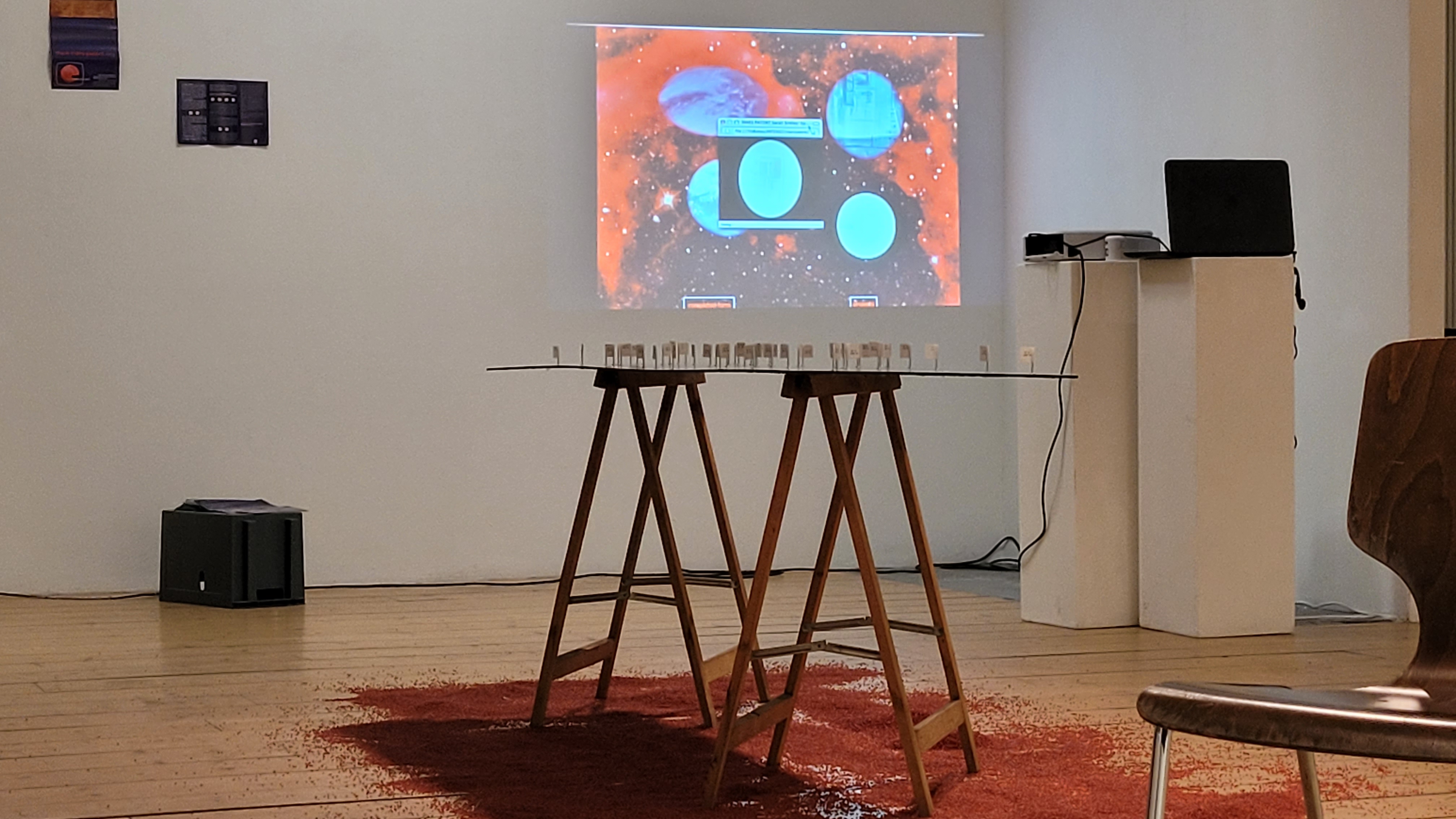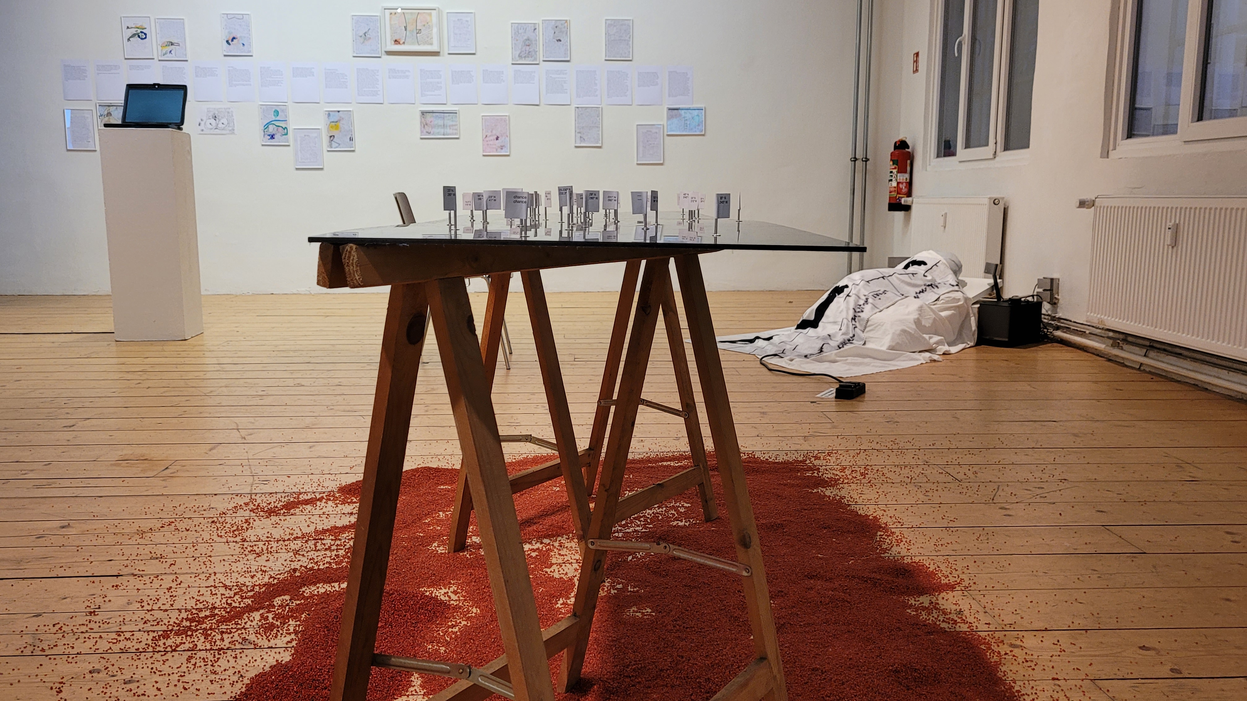 Es wird rekapituliert und katapultiert auf die Oberfläche des Mars wie der trügerischen Displays. Einen ‚Aufstand der Imagination“ unternimmt das ausgestellte und performte Schlafschiff von Tanja Brandmayr, ebenso wie die Letters of Jutta K. Die beiden literarisch orientierten Arbeiten wagen sich in den Grenzbereich des Mitteilbaren und damit vielleicht tiefer in den Welt-Raum (der Sprache) als jedes Spaceship in den Space…
